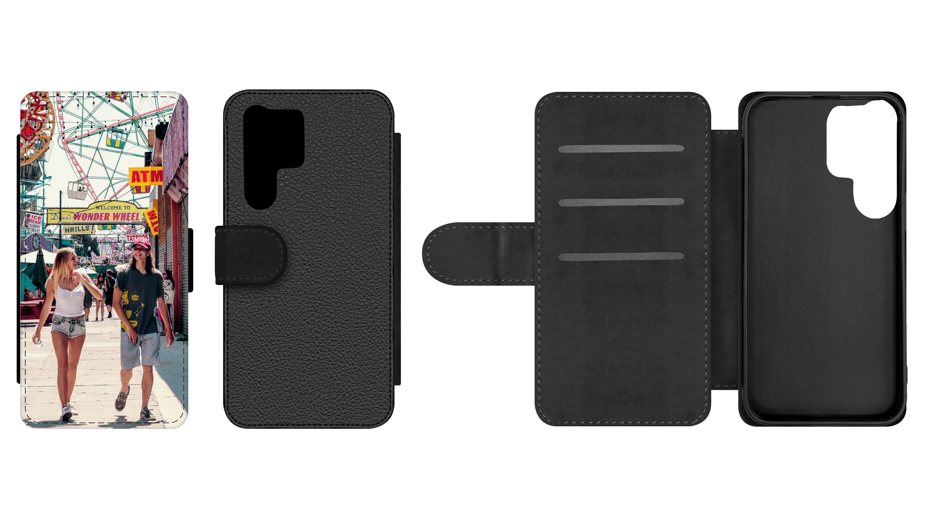 Bei unserem praktischen Samsung Galaxy S25 Ultra Flipcase mit Foto treffen Funktionalität, Business, Rundumschutz und Style aufeinander. Mit magnetischem Schnellverschluss, Einsteckfächern für Karten und hochwertigem Textildruck auf der Vorderseite bietet das Flip Case Rundum-Schutz und eine edle Note. Ideal für Vielreisende, Chaoten und Ordnungsliebende.